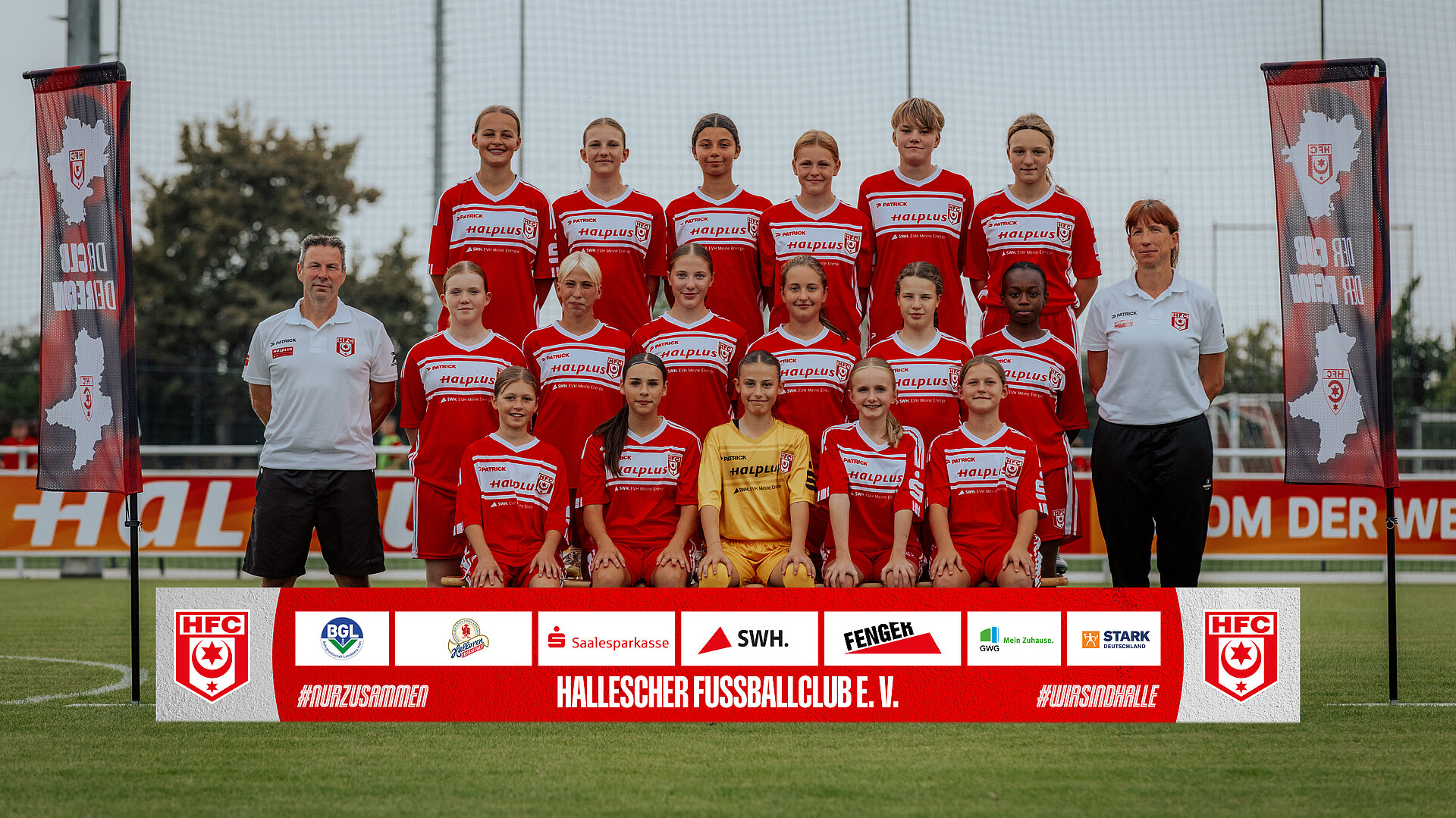 Peter Schmidt (Co-Trainer), Maria Priwitzer (Co-Trainerin), Lilly Matthes, Lana Renée Rackwitz, Emma Bock, Frieda Emely Ducke, Fiona Metzner, Charlotte Schuricht, Philina Anny Martina Schnetter, Hannah Miriam Jankowski, Eugen Stoof (Co-Trainer), Jörg Rackwitz (Cheftrainer, Leiter Frauen- und Mädchenabteilung)