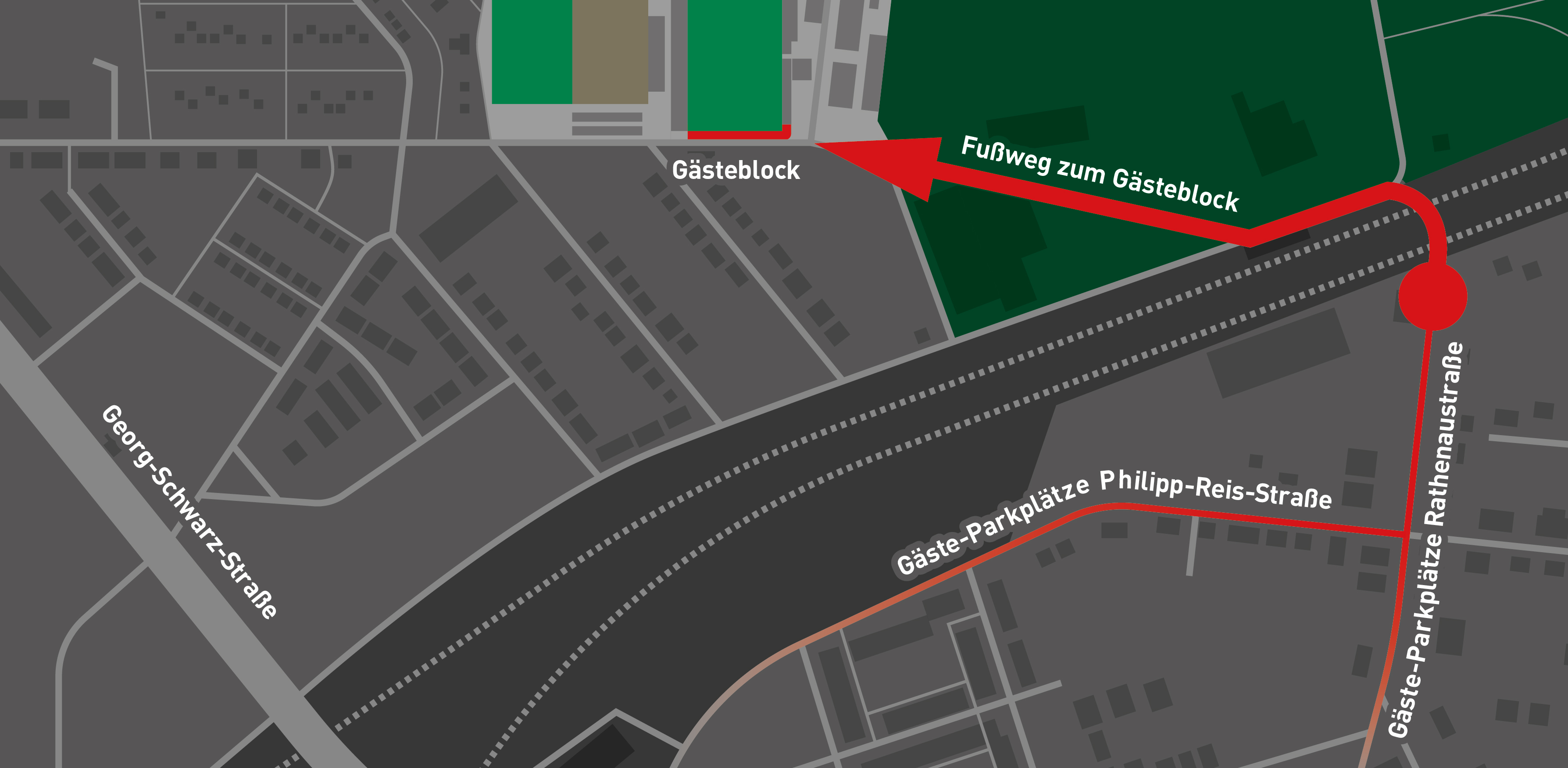 - Der Zugang zum Gästeblock befindet sich in der Straße „Am Sportpark“.