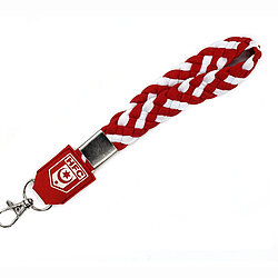 Schlüsselband Zopf kurz, rot und weiß