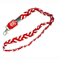 Schlüsselband Zopf lang, rot und weiß